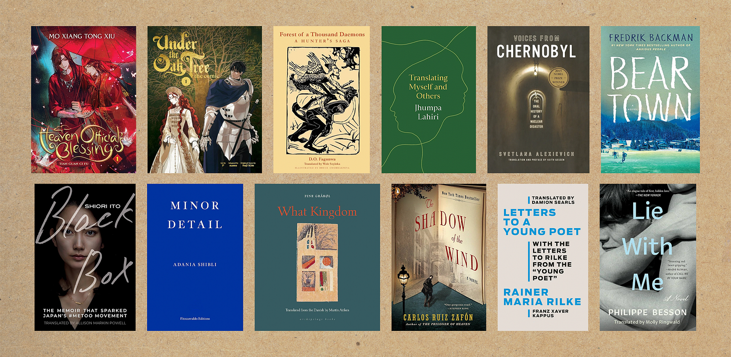 Thanks to the influence of the lovely people on Substack (especially Martha of Martha’s Monthly), I wanted to primarily focus on translated works this year, so I set a goal of reading 12 unique languages translated into English. In the end, I read almost 50 books that were translated, although a majority of that (30 books) was Chinese Danmei…so. The twelve I counted towards my challenge are listed below! It was such a wonderful endeavor, and I feel so changed as a reader and a person. I will be implementing translation into my reading from now on.