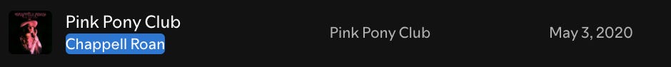 May 2020. My twenty-fifth birthday. That was the year everybody gave playlists as presents. We spent most of that month just making and sending each other playlists in lockdown. (Summer 2020 will always sound distinct to me because of that.) One of my best friends gave me a mix, and I put it on thinking I’d find a few stand-outs, and mostly it was a wash. Some hits, some misses like any good playlist. But there was this one song that instantly, immediately felt like a classic. I put it on repeat in our kitchen. I forced my roommate to listen to it and fall in love with it. It went on to be in my top five on wrapped. It stayed in my wrapped multiple years in a row. It was by this small indie artist who had recently been dropped by her label, and she became the heart of our friend group with only one song.