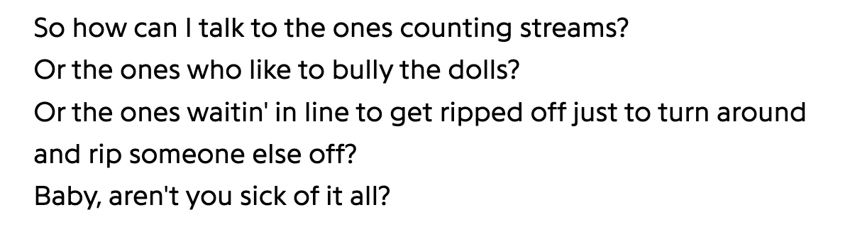 So, I already wrote a whole piece inspired by this song, although it’s mostly a twenty minute rant about why I’m so angry about AI, but I am forcing it upon you again because it’s just that good. It’s on its way to becoming my top played song of the year, and I am really stoked to get to hear it live in October. (Even if Bleach is playing at the new Nashville venue that is owned by Live Nation boooo…)