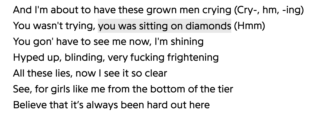 Simply put: RAYE makes damn good pop music. She understands instrumentation in a way that few moderns artists do, and that’s how you can tell she’s a good songwriter. She’s clever — the lyrical transition from “Try to understand just what you / Done to me, you done to me, you done to me / You’re done to me, you’re done to me, you’re done to me” sends me into euphoria every time I hear it — but she’s also just another woman singing about heartbreak and love and the difficulties of being a woman.